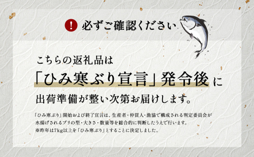 【先行予約】ひみ寒ぶり 朝どれ1本 三枚おろし(神経抜〆:8~10kg)【半七】※配送地域限定