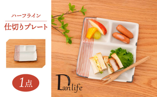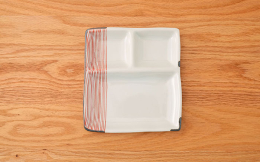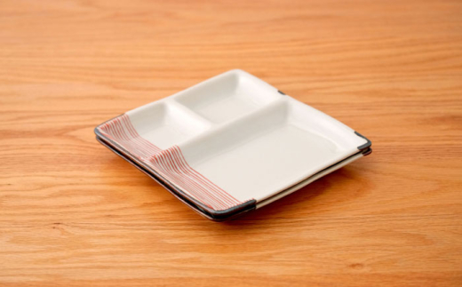 - 【波佐見焼】ハーフライン 仕切りプレート 赤【団陶器】 [PB166]