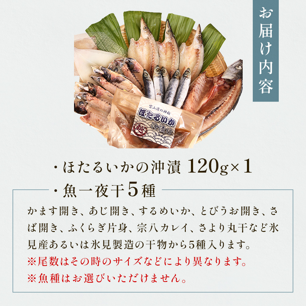 - 氷見 堀与 一夜干5種とほたるいかの沖漬 富山県 氷見市 干物 詰め合わせ 食べ比べ セット ホタルイカ