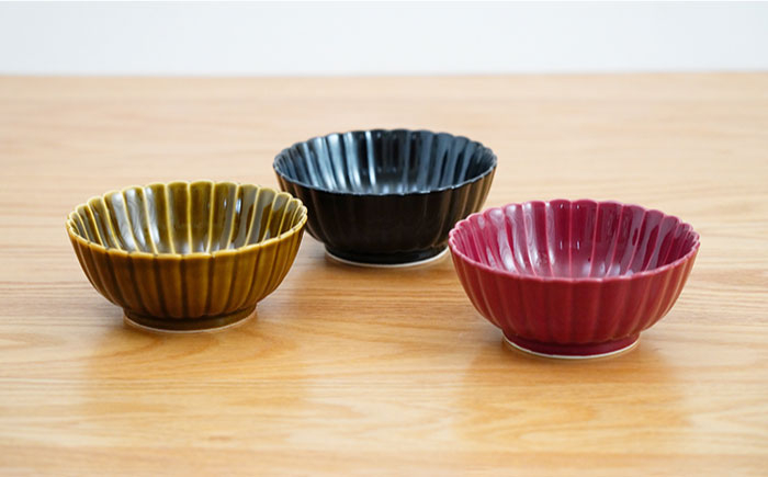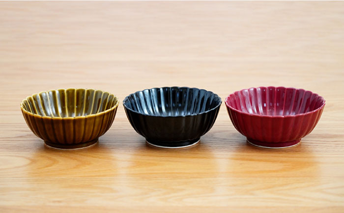 【波佐見焼】花しのぎ 小鉢 (鶯茶・墨・紅) 3点セット 食器 皿 【団陶器】 [PB102]