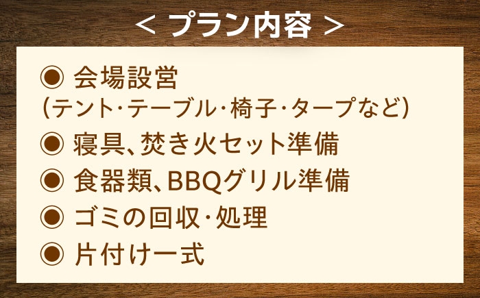- 【手ぶらで宿泊!】ゆったり宿泊キャンププラン(~10人まで) [QCA004]