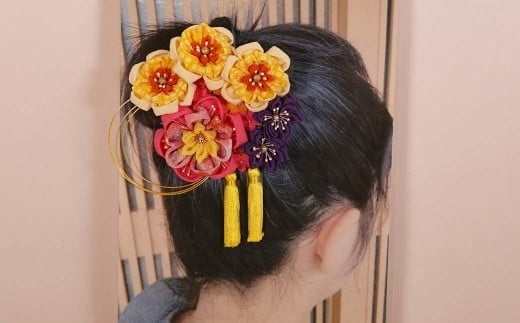 - つまみ細工 お花の髪かざり(大きめクリップ) W-ww-058A