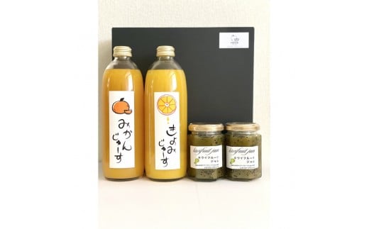 - みかんジュース 1本・きよみジュース 1本・キウイジャム2個 セット ギフト箱入