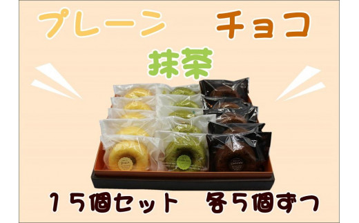 焼きドーナツ(アソート)(プレーン、チョコ、抹茶)各5個入
