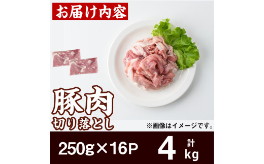 宮崎県産 豚肉 切り落とし(計4kg) 豚 肉 切落しこま切れ 豚こま 国産 冷凍 野菜炒め 豚丼 豚汁 個包装 小分け 宮崎県 門川町【MF-68】【エムファーム】