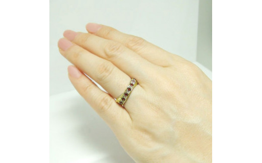 - 【サイズ:17.5号】K18イエローゴールド ガーネット デザインリング【 32772-5】