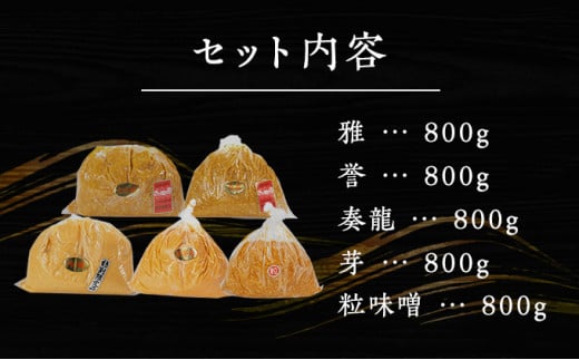 - (I) 味噌 無添加 信州味噌 こだわり セット いろいろな味を楽しみたい方へ 大吟醸みそ 含む 800g × 5種 みそ 詰め合わせ ミソ 米みそ 信州 調味料 国産原料 信州みそ 長野県 長野 上田市 上田 株式会社大桂商店 [№5312-0047]