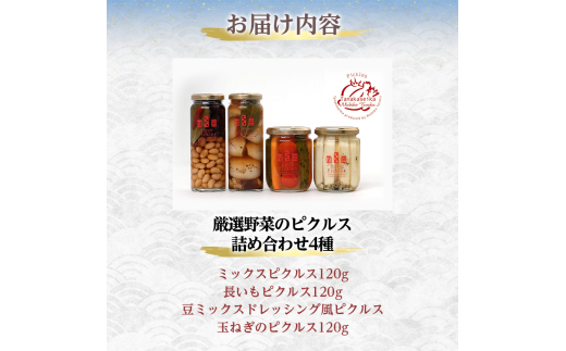 - ピクルス 4種 セット 詰め合わせ 田中青果 見て食べて美味しい ミックス 長いも 豆ミックス 玉ねぎ 野菜 漬け物 漬物 ご飯のお供 ごはんのお供 惣菜 おかず おつまみ つまみ 北海道 留萌