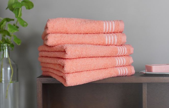 - 【スピード発送】シルキー フェイスタオル ピンク 5枚