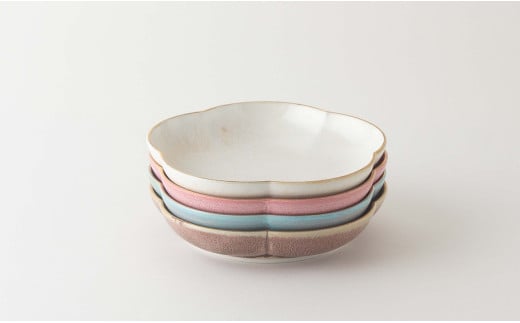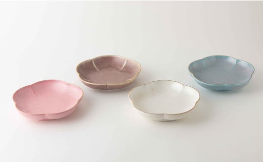 - 【特別な日のおもてなしに】 梅型取皿 径15cm 4色セット【KIHARA】有田焼 小皿 ハレの日 マルチカラー 金縁 和風 食器 結晶釉 キハラ A35-241