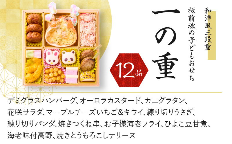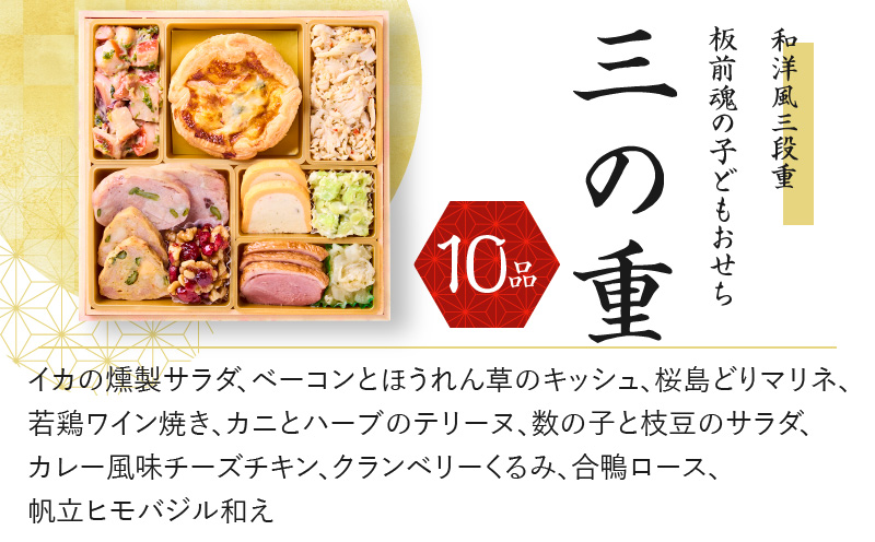 おせち「板前魂の子ども用おせち」和洋風 三段重 6.8寸 36品 3人前 カルツォーネ 付き 先行予約【おせち おせち料理 板前魂おせち おせち2026 おせち料理2026 冷凍おせち 贅沢おせち 先行予約おせち 年内発送】