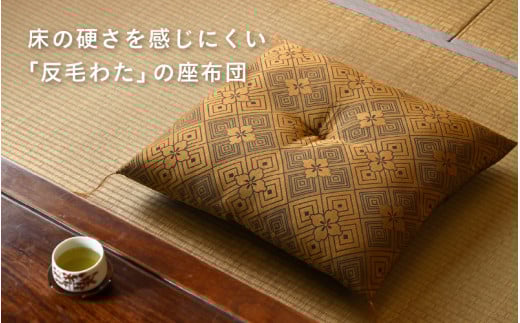 床の硬さを感じにくい「反毛わた」座布団 武田菱(銘仙判55cm×59cm)3枚組【ゴールド】 [A-20421_02]