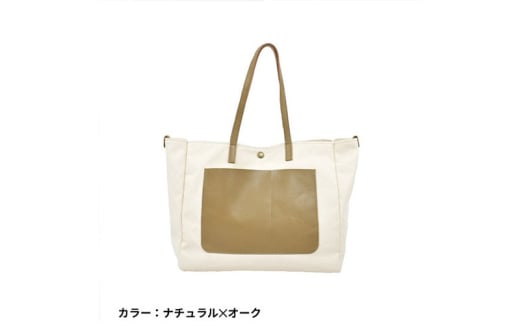 レディース 国産 前ポケットトートバッグ 7M2-1146(ナチュラル×オーク)