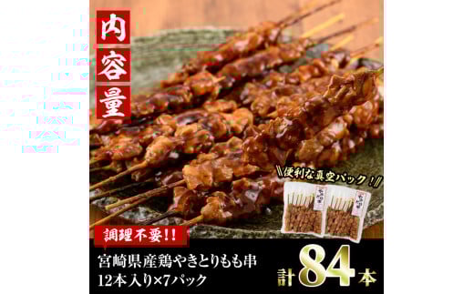 <簡単!電子レンジ調理>国産焼き鳥もも串セット(合計84本・12本×7)鶏肉 鳥肉 とり肉 小分け モモ肉 くし タレ 国産 おかず おつまみ 冷凍 温めるだけ【V-65】【味鶏フーズ】