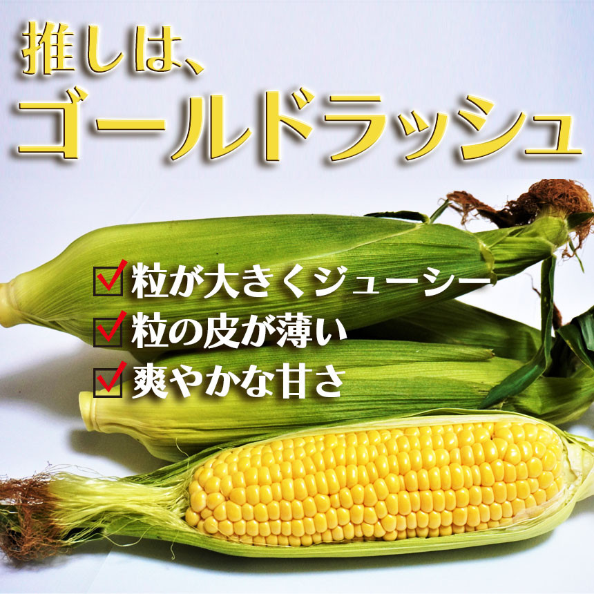 【先行予約】【特大】とうもろこし 極甘 スイートコーン 「 ゴールドラッシュ 」 8.5kg 以上 【2026年8月上旬-9月中旬頃出荷】 とうもろこし 極甘 スイートコーン 「 ゴールドラッシュ 」 特大 北海道20~22本 特大 サイズ北海道 朝採れ 真空予冷 冷蔵 高糖度 トウモロコシ ギフト お中元 コーン なよろイエロー 名寄イエロー TVで紹介