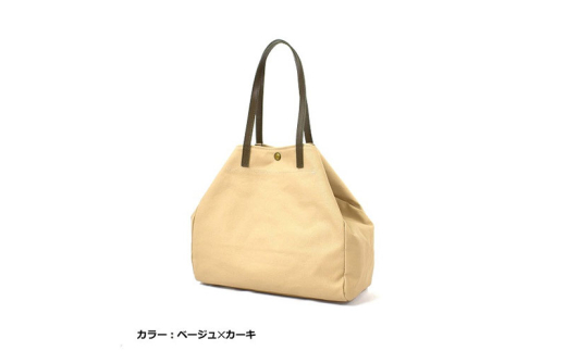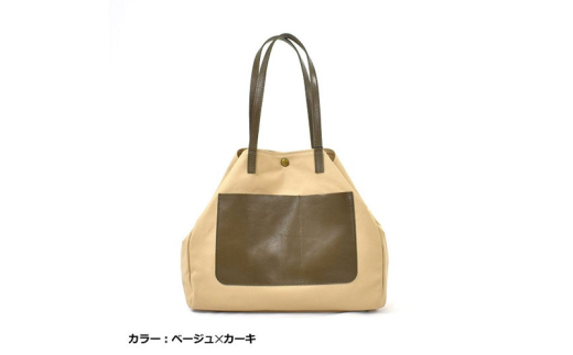 - レディース 国産 前ポケットトートバッグ 7M2-1146(ベージュ×カーキ)
