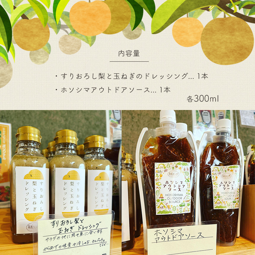 【2025年先行予約】すりおろし梨と玉ねぎのドレッシング2個とアウトドアソース1個 各300ml 真岡市 栃木県 送料無料