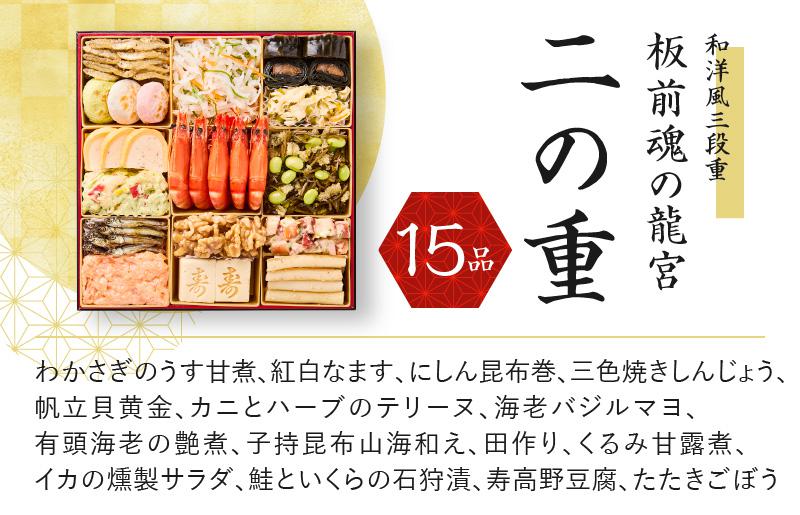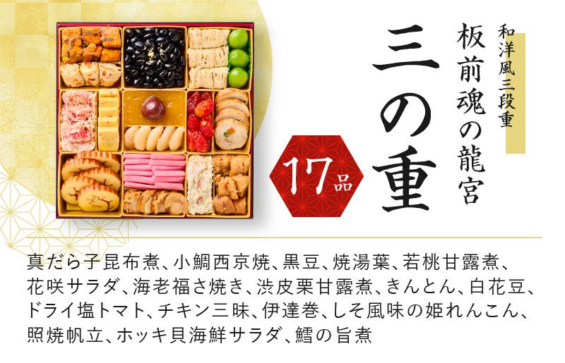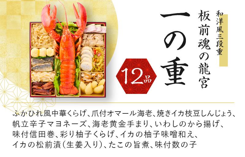 おせち「板前魂の龍宮」和洋風三段重 45品 5人前 福良鮑 付き 先行予約【おせち おせち料理 板前魂おせち おせち2026 おせち料理2026 冷凍おせち 贅沢おせち 先行予約おせち 年内発送】