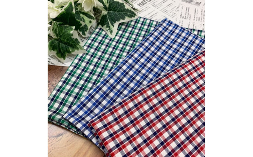 - 播州織生地1m「コットン チェック(50003)」日本製 (04-1) グリーン