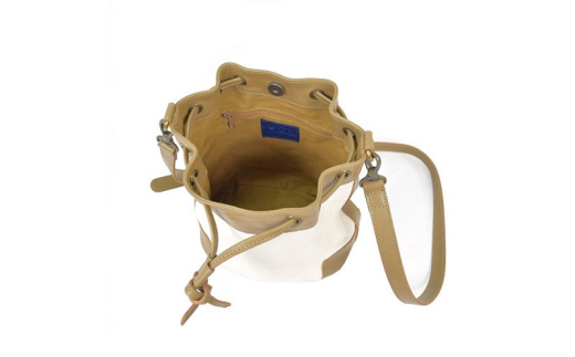 - レディース 国産 巾着ショルダーバッグ 7M2-1147(ベージュ×ブラック)