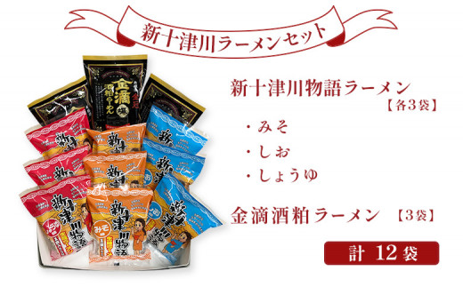 - 新十津川ラーメンセットA(新十津川物語ラーメンみそ・しお・しょうゆ各3個、金滴酒粕ラーメン3個)【1202501】