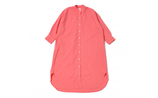 - 播州織綿麻キュプラ7分袖ワンピース レディース バンドカラー スタンドカラー シャツワンピース (55-14) スカーレット