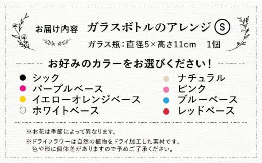 - 【ピンク】ドライフラワー ボトルアレンジS(選べる8タイプ) ドライフラワー 乾燥花 プリザーブドフラワー アレンジメント フラワーアレンジ 三次市/ iolite flowers [APBT012-6]