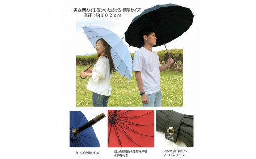 【ブラック】傘 anon10316本骨傘 ベーシック 男女兼用【ふるさと納税】| 風に風に強い丈夫なグラスファイバー骨 和傘 カバー付き 誕生日・贈り物にも適したギフト箱入り 女性 男性 婦人 紳士 メンズ レディース