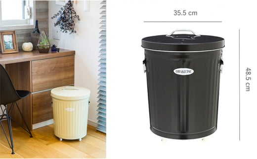 - [№5258-7162]0163<オバケツ>バケツ職人が作るダストボックス・33L・キャスター付/純国産 インテリア【アイボリー】