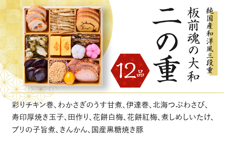 おせち「板前魂の大和」純国産和洋風 三段重 6.5寸 32品 3人前 先行予約【おせち おせち料理 板前魂おせち おせち2026 おせち料理2026 冷凍おせち 贅沢おせち 先行予約おせち 年内発送】