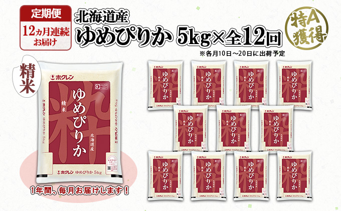 - 定期便 12ヶ月連続12回 北海道産 ゆめぴりか 精米 5kg 米 新米 特A 白米 お取り寄せ ごはん 道産米 ブランド米 1年 お米 ご飯 おまとめ買い ホクレン 北海道 倶知安町 【定期便・お米・ゆめぴりか・精米】