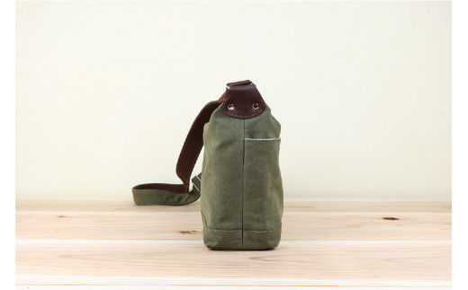 【アーミーグリーン】ファスナーショルダーバッグ [アトリエSASSA 富山県 朝日町 34310324-ag] ファスナー 鞄 かばん カバン 帆布 革 おしゃれ 手作り シンプル レザー
