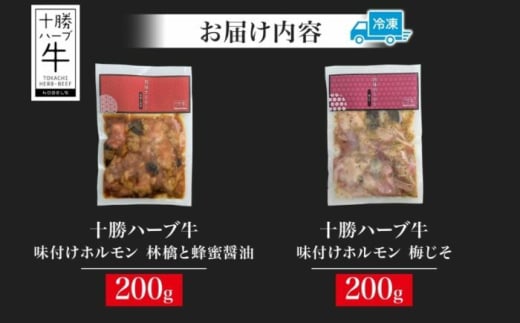 - 北海道 十勝ハーブ牛 味付けホルモン2種×各200g(林檎と蜂蜜醤油・梅じそ)北海道産 焼き肉 やきにく ミックスホルモン 味付き 食べ比べ 国産 牛肉 肉 焼肉用 十勝 あしょろ 《足寄町》 【日本ふるさと創生株式会社】 [BEBB065]