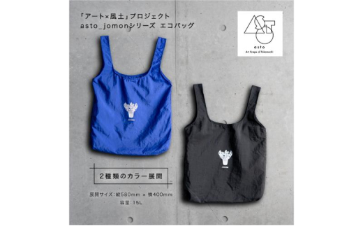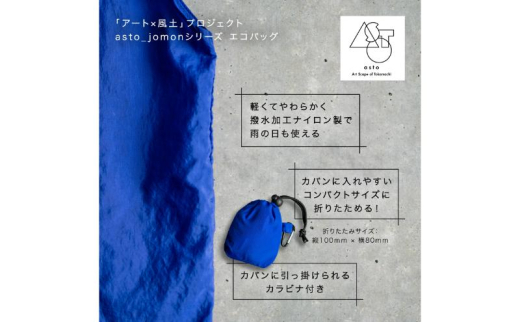 - 【いつも心にJOMONを】asto_jomon エコバッグ(ステッカーのオマケつき)/新潟県十日町市で出土された国宝・火焔型土器モチーフのエコバッグ(青/黒) 選べる 青