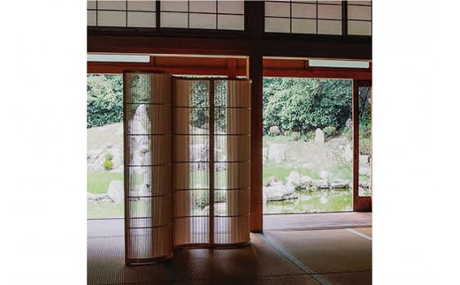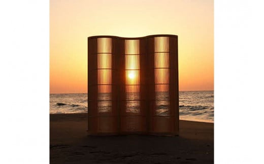 - 組子細工 衝立「波」 3連(国産ヒノキ)組子細工 組子 パーティション 工芸品 伝統工芸 木製 檜 曲げ組子【031_1773】