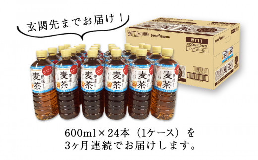 【毎月定期便・3ヶ月】ポッカサッポロ 伊達麦茶 600ml PET 24本入り