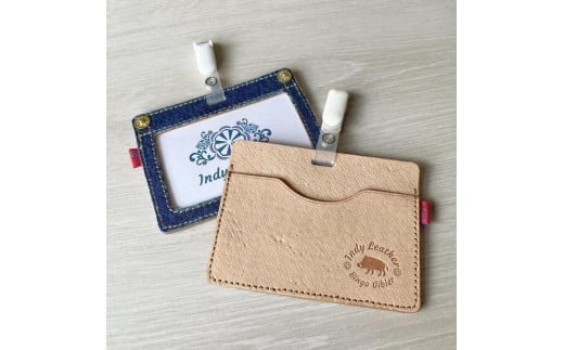 - 【ブルー】福山デニムとジビエレザー の名札・IDカードケース 広島県福山市/インディレザー ケース 名札 本革 レザー おしゃれ デニム [BAAN006]