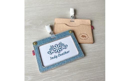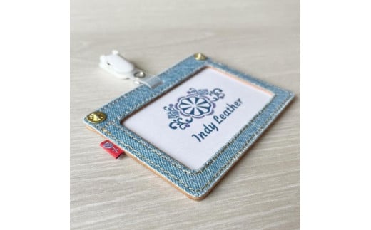 【ブルー】福山デニムとジビエレザー の名札・IDカードケース 広島県福山市/インディレザー ケース 名札 本革 レザー おしゃれ デニム [BAAN006]