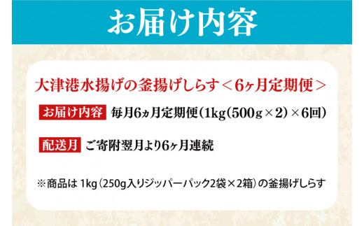 大津港水揚げの釜揚げしらす<6ヶ月定期便><毎月> 1kg×6回【海鮮 魚介類 しらす シラス ご飯のお供 たっぷり お手頃 個包装】(AS112)