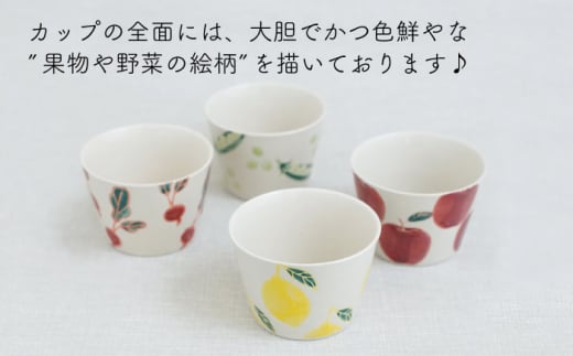 - 【波佐見焼】フレッシュアート ミニ カップ 4柄セット 〈リンゴ・レモン・ビーン・ラディッシュ〉【菊祥陶器】[OAQ044] / 食器 陶器 コップ 湯呑み そば猪口 そばちょこ 猪口セット かわいい おしゃれ カップ そうめん つゆ入れ お皿 陶磁器 はさみやき 波佐見焼 うつわ