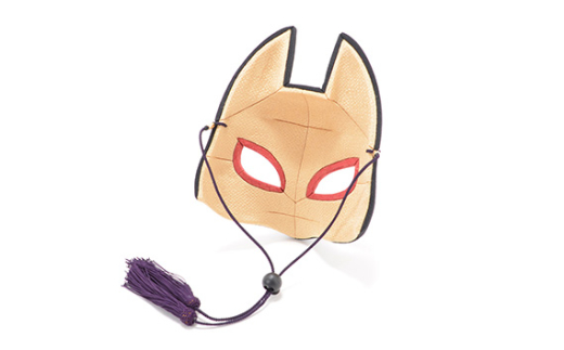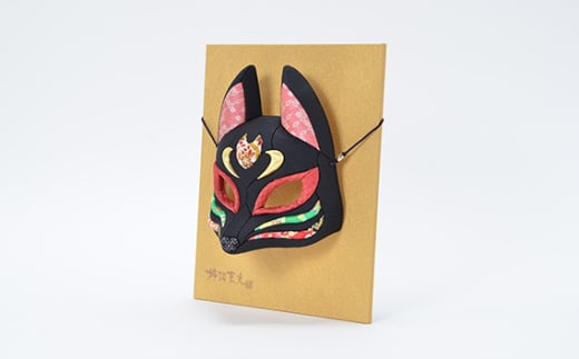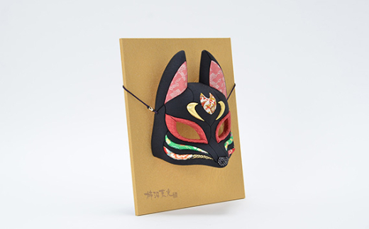 - No.184-02 木目込神楽(狐面/黒) / お面 きつね 五穀豊穣 家内安全 商売繁盛 縁起 埼玉県