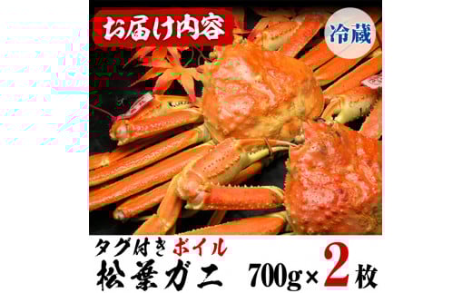 - <11月中旬~3月中旬発送予定><平日着※指定日不可>鳥取県境港産 タグ付きボイル松葉がに(700g×2枚)【sm-BN004-A】【三光水産】