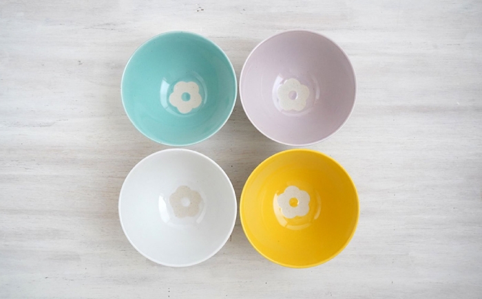 【波佐見焼】茶碗 花花 4色 セット【和山】 [WB188]