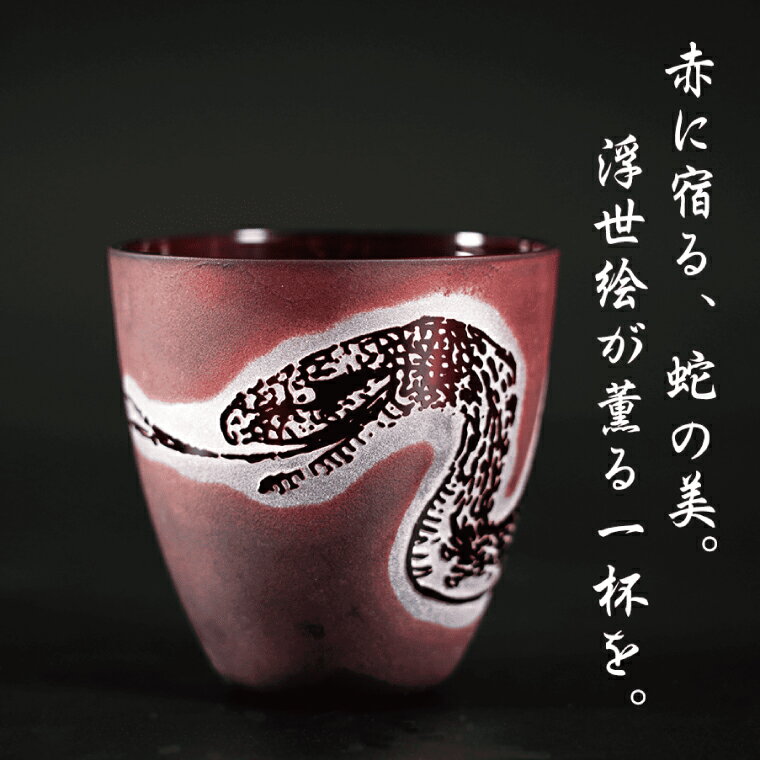- 【ふるさと納税】浮世絵の蛇が舞う 赤いぐい飲み サンドブラスト彫刻の和モダンなおちょこ(75ml)日本製 砂吹き工房ねこまたや【猫 おちょこ 彫刻 プレゼント ギフト 就職祝い 誕生日 父の日 母の日 結婚祝い 新築祝い 和風】(HW-17)