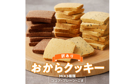 - 訳あり!おから100%クッキー【MIX3種類】(プレーン・ココア・ごま)300g_訳あり!おから100%クッキー【MIX3種類】(プレーン・ココア・ごま) 容量 選べる 送料無料_Dw075