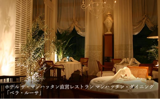 - マンハッタン・ダイニング「ベラ・ルーサ」ペア食事券 看板料理“ロッシーニ” お食事券 食事 洋食 フレンチ フルコース 牛フィレ フォラグラ 黒トリュフ 魚料理 肉料理 ランチ ディナー 幕張 千葉県[№5346-0965]