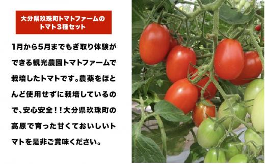 トマト3種セット (観光農園トマトファーム) 大分県 玖珠町 トマト 大玉 ミニトマト アイコ あやおり 高原 栽培 農園 もぎ取り 甘い 美味 トマトファーム 安心 安全 観光 観光農園 春 冬
