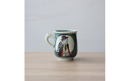 有田焼 錦南蛮ペアマグカップ 赤・緑 山忠 器 食器 マグカップ 2個セット 和風マグカップ 古伊万里 可愛い かわいいマグカップ 和食器 伝統 渋い 南蛮人 手描き 手づくり 職人 古伊万里 初期伊万里 50000円 A50-174