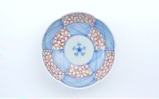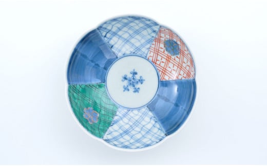 - 有田焼 文青 輪花預け鉢2個セット(市松花弁紋・地紋)まるぶん A35-189