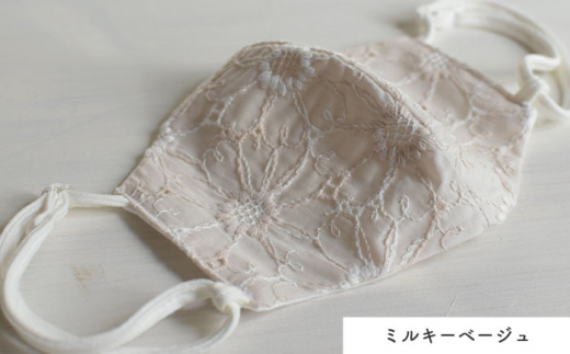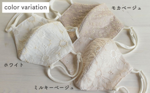- 【オフホワイト×モカベージュ】おしゃれ レース マスク 〈2枚セット〉3色から選べる アジャスター調整可能 洗える 立体 マスク【coco plus an factory】[OCR004-2]